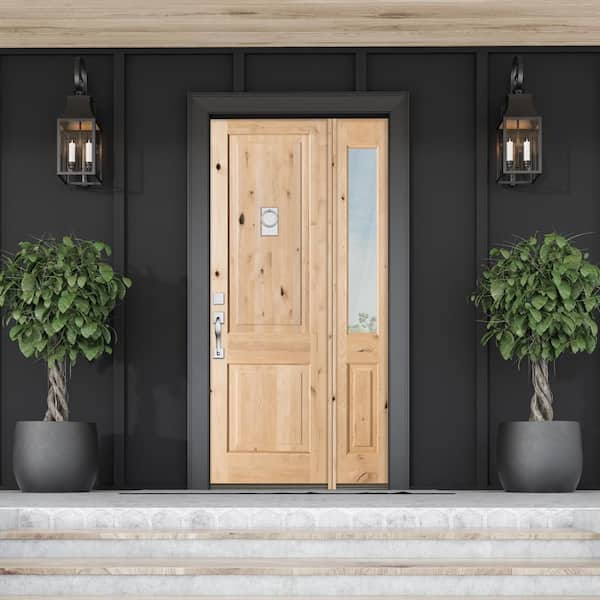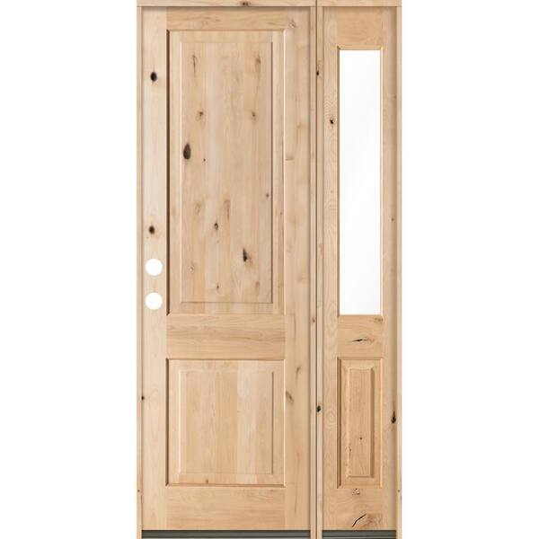 44 in. x 96 in. Rustic Unfinished Knotty Alder Square-Top Right-Hand Right Half Sidelite Clear Glass Prehung Front Door