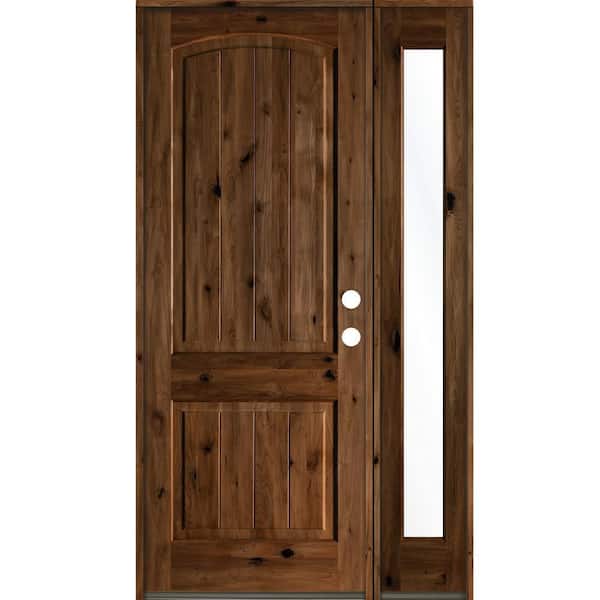 44 in. x 96 in. Rustic knotty alder Left-Hand/Inswing Clear Glass Provincial Stain Wood Prehung Front Door with RFSL