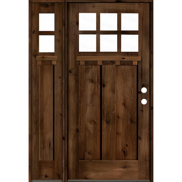 46 in. x 80 in. Knotty Alder 2-Panel Left-Hand/Inswing 6-Lite Clear Glass Provincial Stain Wood Prehung Front Door LSL