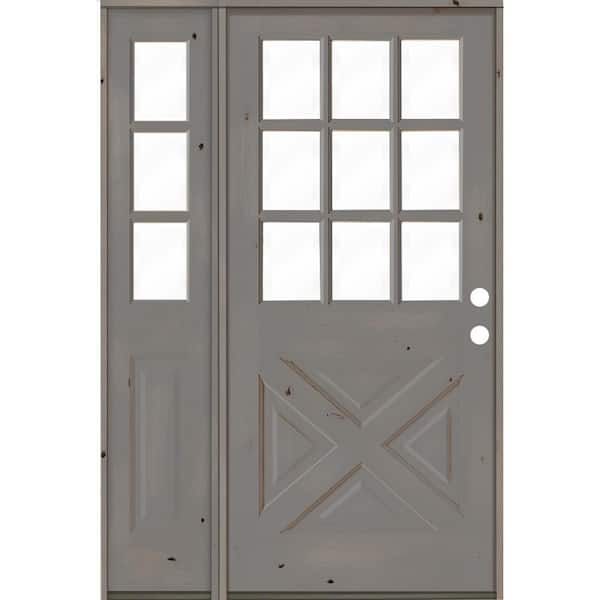 46 in. x 80 in. Knotty Alder 2-Panel Left-Hand/Inswing Clear Glass Grey Stain Wood Prehung Front Door w/Left Sidelite