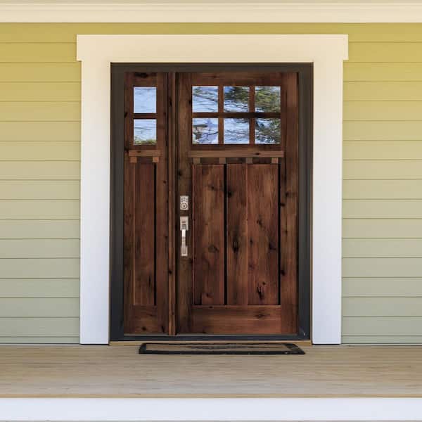 46 in. x 80 in. Knotty Alder 2- Panel Right-Hand/Inswing 6-Lite Clear Glass Red Mahogany Stain Wood Prehung Front Door