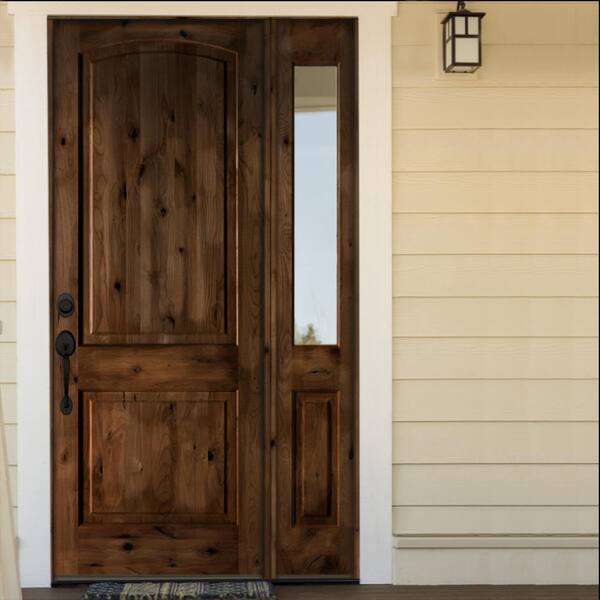 46 in. x 80 in. Knotty Alder 2 Panel Right-Hand/Inswing Clear Glass Clear Stain Wood Prehung Front Door with Sidelite