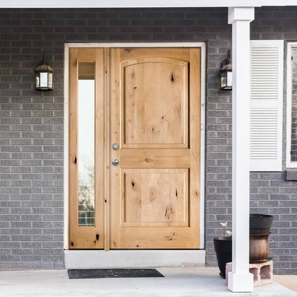 46 in. x 80 in. Knotty Alder 2 Panel Right-Hand/Inswing Clear Glass Provincial Stain Wood Prehung Front Door w/Sidelite