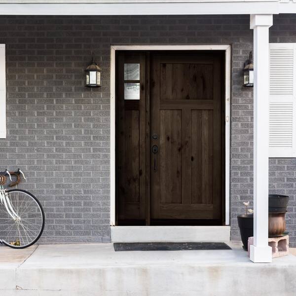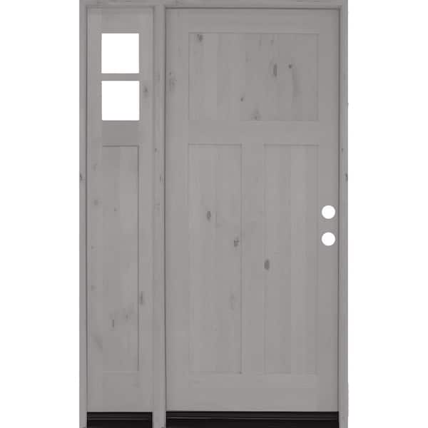 46 in. x 80 in. Knotty Alder 3 Panel Left-Hand/Inswing Clear Glass Grey Stain Wood Prehung Front Door with Left Sidelite