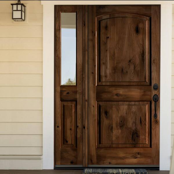 46 in. x 80 in. Knotty Alder Left-Hand/Inswing Clear Glass Red Chestnut Stain Wood Prehung Front Door with Sidelite