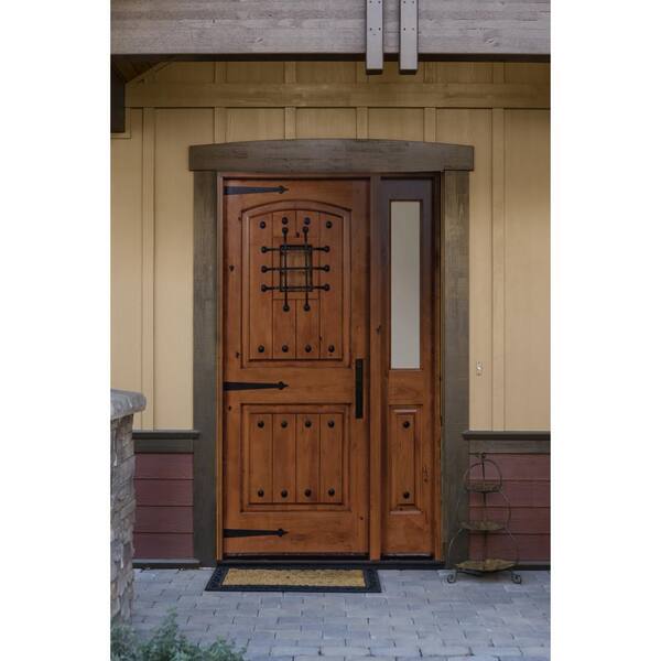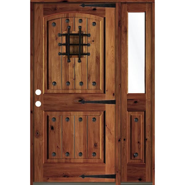 46 in. x 80 in. Medit. Knotty Alder Right-Hand/Inswing Clear Glass Red Chestnut Stain Wood Prehung Front Door with RHSL
