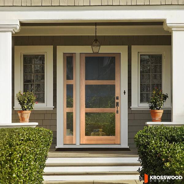 46 in. x 80 in. Modern Hemlock Left-Hand/Inswing 3-Lite Clear Glass Clear Stain Wood Prehung Front Door w/Left Sidelite