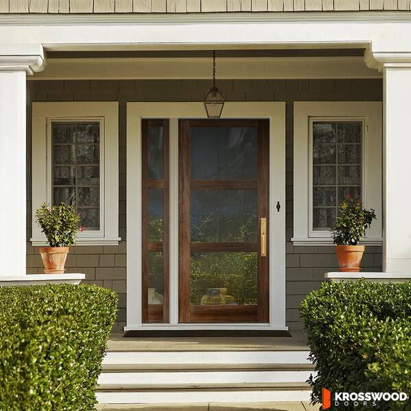 46 in. x 80 in. Modern Hemlock Left-Hand/Inswing 3-Lite Clear Glass Provincial Stain Wood Prehung Front Door w/LSL