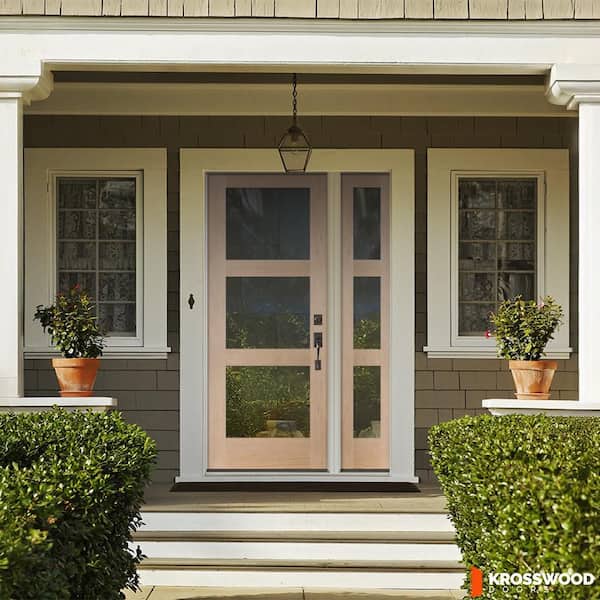 46 in. x 80 in. Modern Hemlock Left-Hand/Inswing 3-Lite Clear Glass Unfinished Wood Prehung Front Door with Sidelite