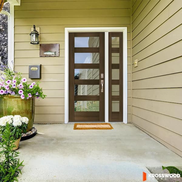 46 in. x 80 in. Modern Hemlock Left-Hand/Inswing 5-Lite Clear Glass Black Stain Wood Prehung Front Door w/Sidelite