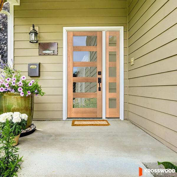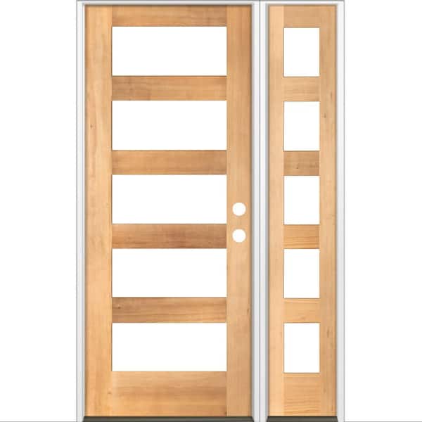 46 in. x 80 in. Modern Hemlock Left-Hand/Inswing 5-Lite Clear Glass Clear Stain Wood Prehung Front Door w/Sidelite