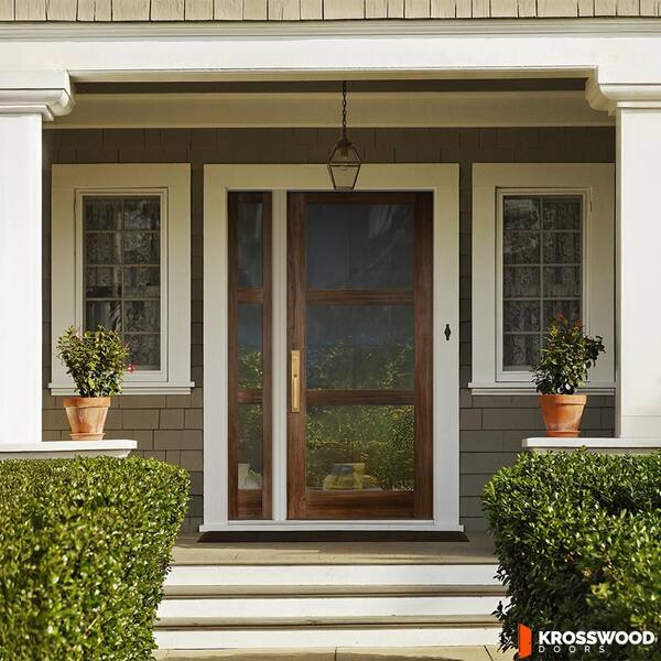 46 in. x 80 in. Modern Hemlock Right-Hand/Inswing 3-Lite Clear Glass Provincial Stain Wood Prehung Front Door with LSL
