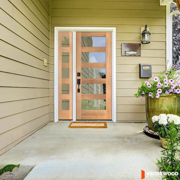 46 in. x 80 in. Modern Hemlock Right-Hand/Inswing 5-Lite Clear Glass Clear Stain Wood Prehung Front Door with Sidelite