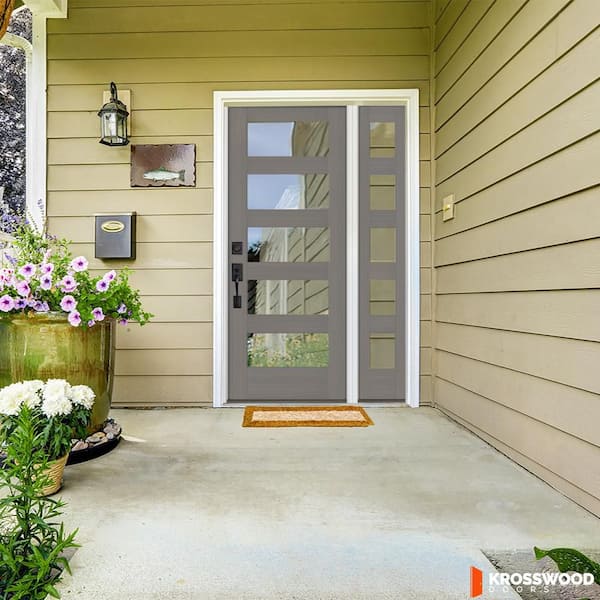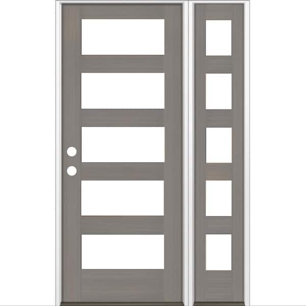 46 in. x 80 in. Modern Hemlock Right-Hand/Inswing 5-Lite Clear Glass Grey Stain Wood Prehung Front Door with Sidelite