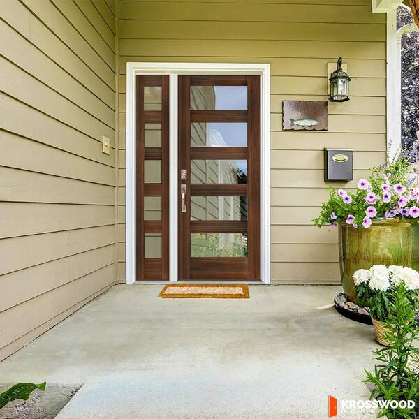 46 in. x 80 in. Modern Hemlock Right-Hand/Inswing 5-Lite Clear Glass Red Mahogany Stain Wood Prehung Front Door