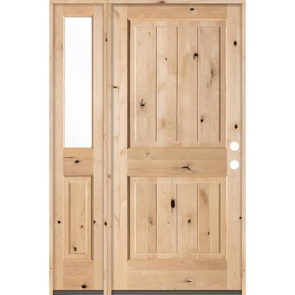 46 in. x 80 in. Rustic Knotty Alder 2 Panel Left-Hand/Inswing Clear Glass Clear Stain Wood Prehung Front Door w/Sidelite