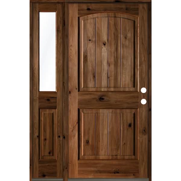 46 in. x 80 in. Rustic Knotty Alder Left-Hand/Inswing Clear Glass Provincial Stain Wood Prehung Front Door with Sidelite