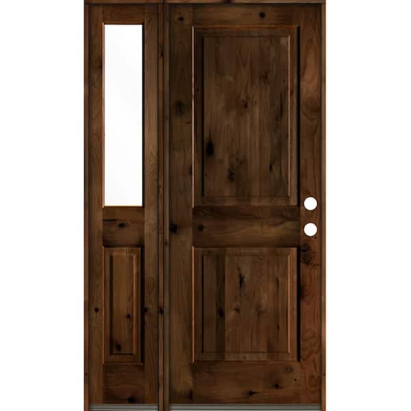 46 in. x 80 in. Rustic knotty alder 2-Panel Left-Hand/Inswing Clear Glass Provincial Stain Wood Prehung Front Door