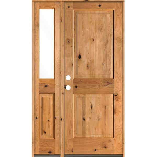 46 in. x 80 in. Rustic knotty alder 2-Panel Sidelite Right-Hand/Inswing Clear Glass Clear Stain Wood Prehung Front Door