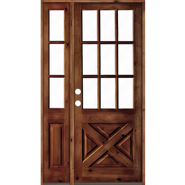 46 in. x 96 in. Alder 2-Panel Right-Hand/Inswing Clear Glass Red Chestnut Stain Wood Prehung Front Door w/Left Sidelite