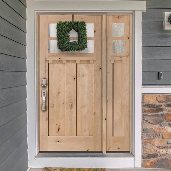 46 in. x 96 in. Craftsman Alder 2-Panel Right-Hand/Inswing 6-Lite Clear Glass DS Unfinished Wood Prehung Front Door RSL