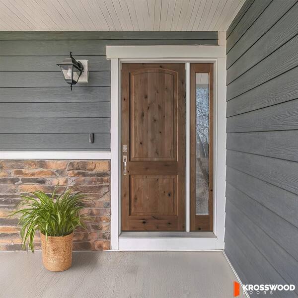 46 in. x 96 in. Knotty Alder 2-Panel Arch Right-Hand/Inswing Clear Glass True Black Stain Wood Prehung Front Door w/RFSL