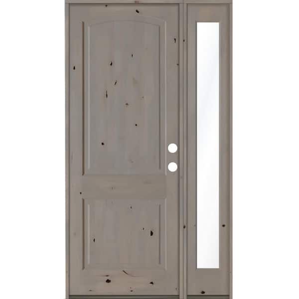46 in. x 96 in. Knotty Alder 2-Panel Left-Hand/Inswing Clear Glass Grey Stain Wood Prehung Front Door w/Right Sidelite