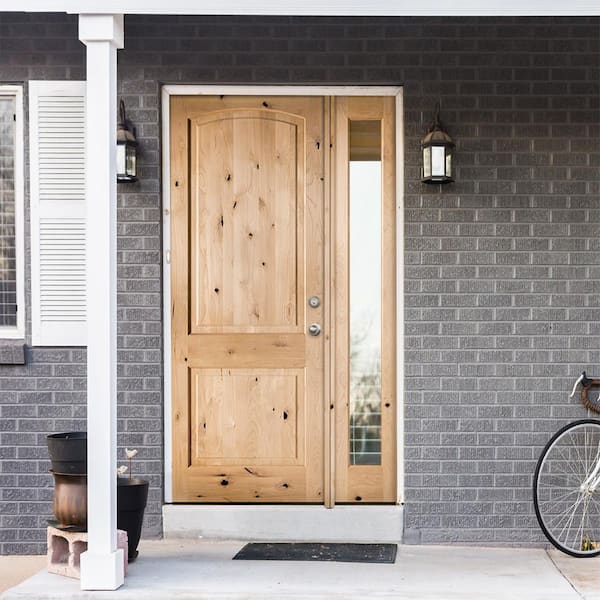 46 in. x 96 in. Knotty Alder 2-Panel Left-Hand/Inswing Clear Glass Red Mahogany Stain Wood Prehung Front Door w/Sidelite