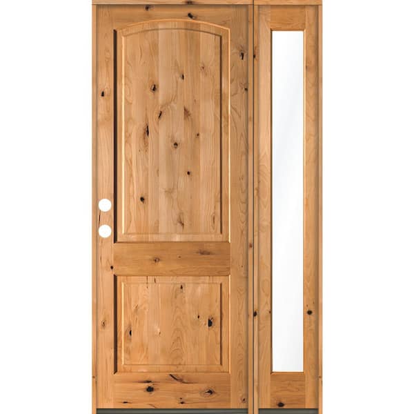 46 in. x 96 in. Knotty Alder 2-Panel Right-Hand/Inswing Clear Glass Clear Stain Wood Prehung Front Door w/Right Sidelite