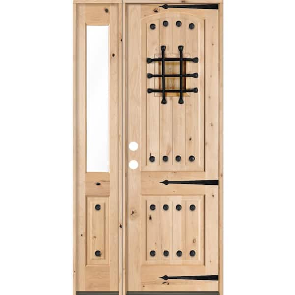 46 in. x 96 in. Mediterranean Unfinished Knotty Alder Arch Right-Hand Left Half Sidelite Clear Glass Prehung Front Door