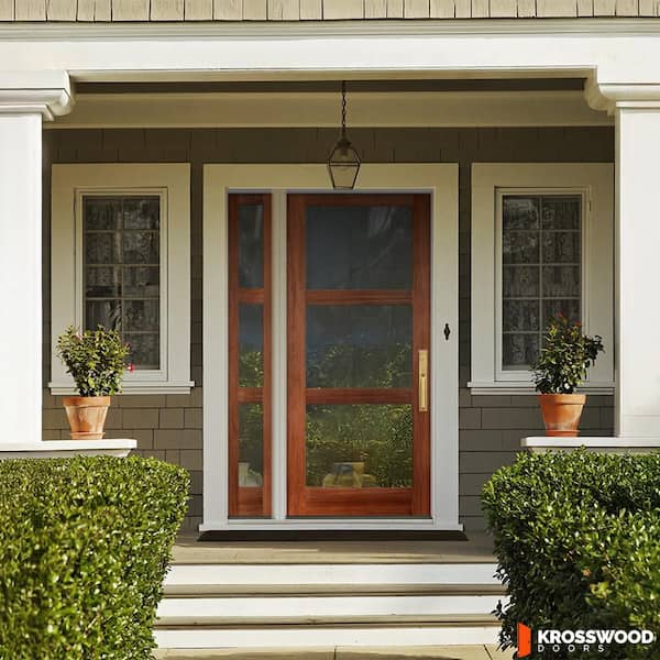 46 in. x 96 in. Modern Hemlock Left-Hand/Inswing 3-Lite Clear Glass Red Chestnut Stain Wood Prehung Front Door with LSL