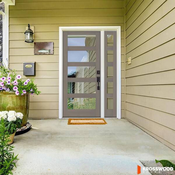 46 in. x 96 in. Modern Hemlock Left-Hand/Inswing 5-Lite Clear Glass Grey Stain Wood Prehung Front Door with Sidelite