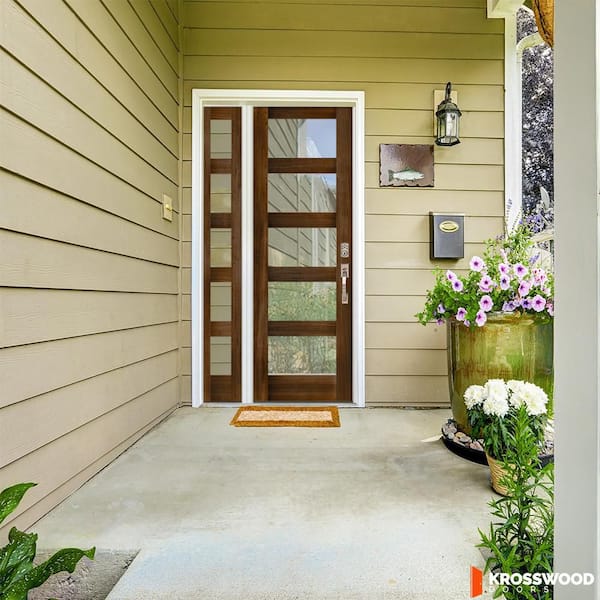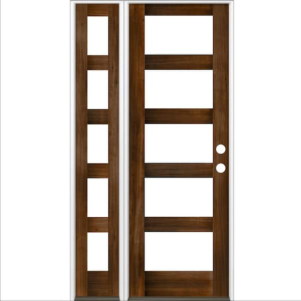46 in. x 96 in. Modern Hemlock Left-Hand/Inswing 5-Lite Clear Glass Provincial Stain Wood Prehung Front Door w/Sidelite
