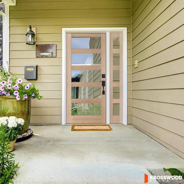 46 in. x 96 in. Modern Hemlock Left-Hand/Inswing 5-Lite Clear Glass unfinished Wood Prehung Front Door with Sidelite