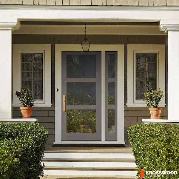 46 in. x 96 in. Modern Hemlock Right-Hand/Inswing 3-Lite Clear Glass Grey Stain Wood Prehung Front Door with Sidelite