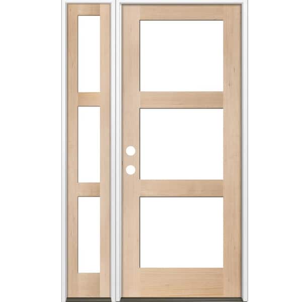 46 in. x 96 in. Modern Hemlock Right-Hand/Inswing 3-Lite Clear Glass Unfinished Wood Prehung Front Door w/Left Sidelite