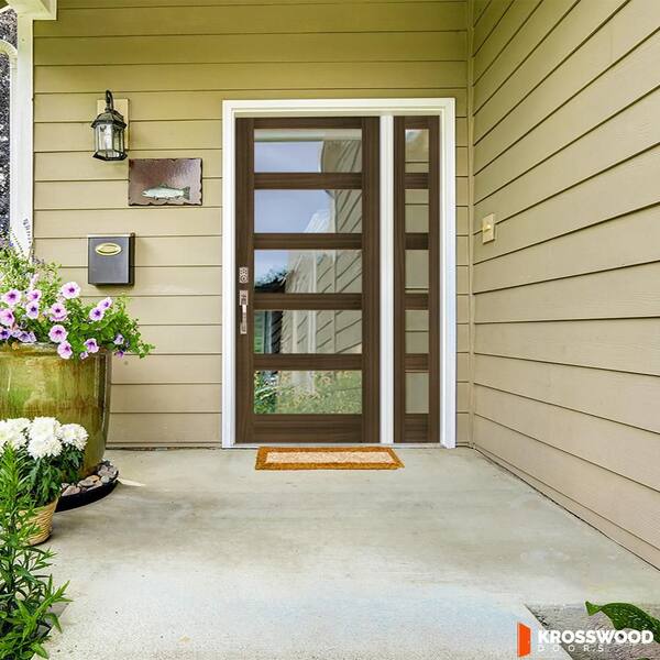 46 in. x 96 in. Modern Hemlock Right-Hand/Inswing 5-Lite Clear Glass Black Stain Wood Prehung Front Door with Sidelite