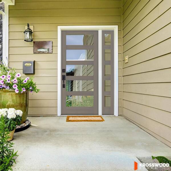 46 in. x 96 in. Modern Hemlock Right-Hand/Inswing 5-Lite Clear Glass Grey Stain Wood Prehung Front Door with Sidelite