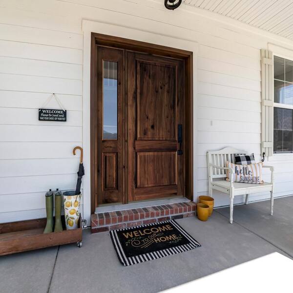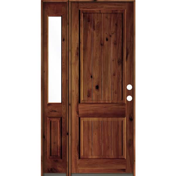 46 in. x 96 in. Rustic Knotty Alder Left-Hand/Inswing Clear Glass Red Chestnut Stain Wood Prehung Front Door w/Sidelite