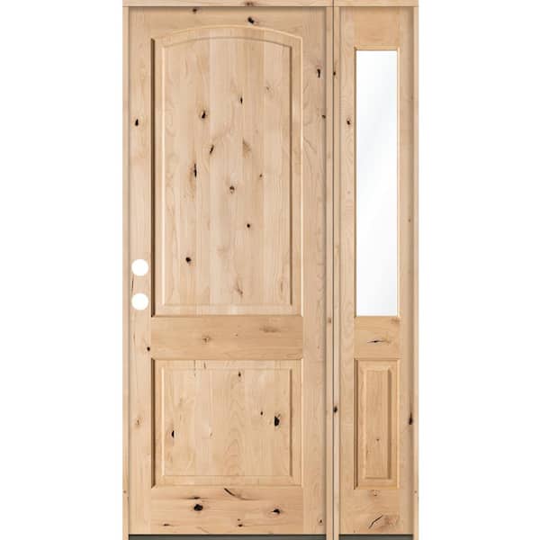 46 in. x 96 in. Rustic Unfinished Knotty Alder Arch-Top Right-Hand Right Half Sidelite Clear Glass Prehung Front Door