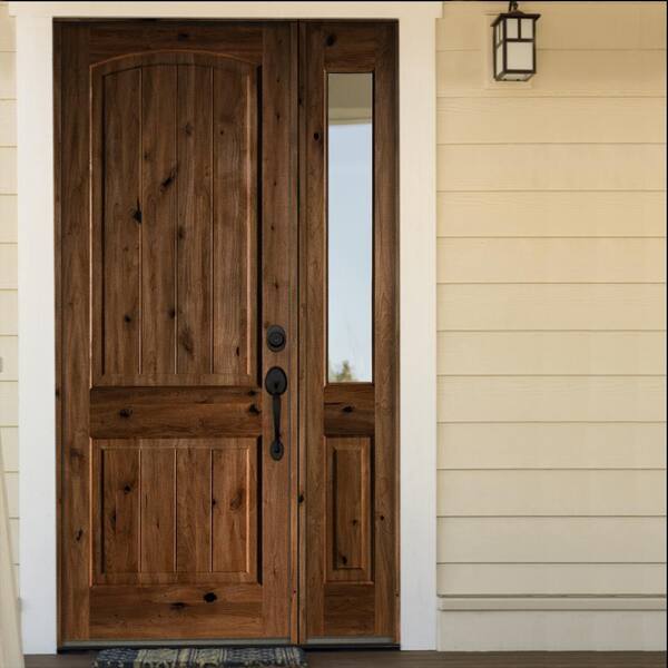 46 in. x 96 in. Rustic Unfinished Knotty Alder Arch Top VG Left-Hand Right Half Sidelite Clear Glass Prehung Front Door