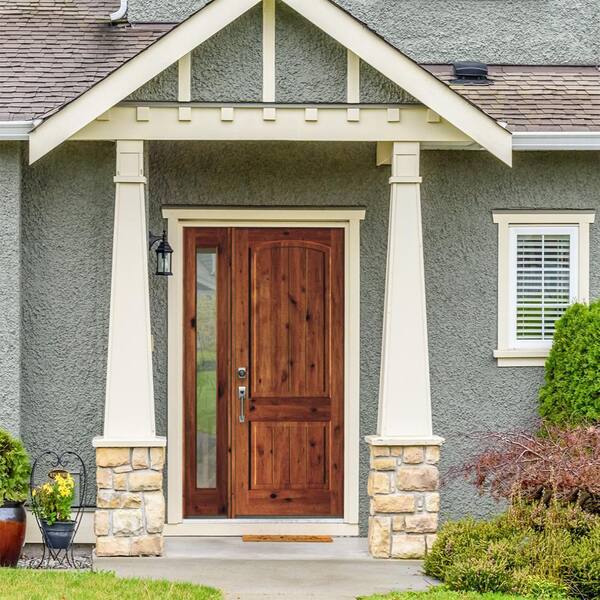 46 in. x 96 in. Rustic Unfinished Knotty Alder Arch Top VG Right-Hand Left Full Sidelite Clear Glass Prehung Front Door