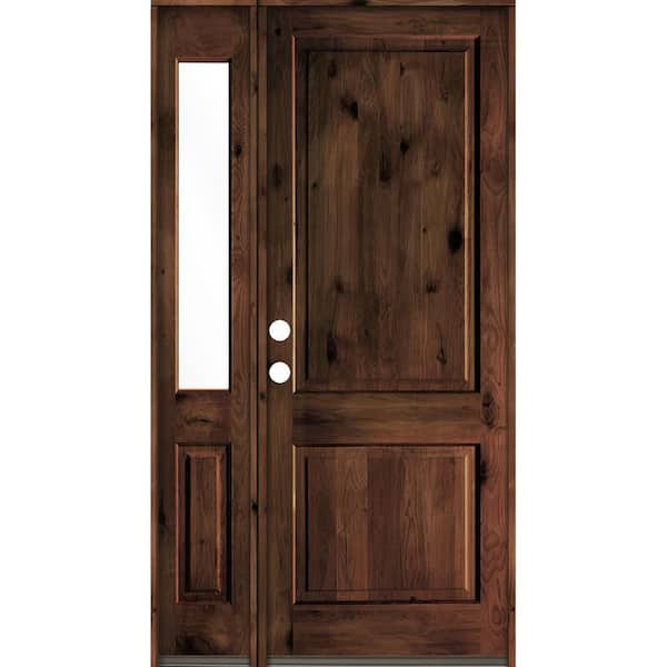 46 in. x 96 in. Rustic knotty alder 2-Panel Right-Hand/Inswing Clear Glass Red Mahogany Stain Wood Prehung Front Door