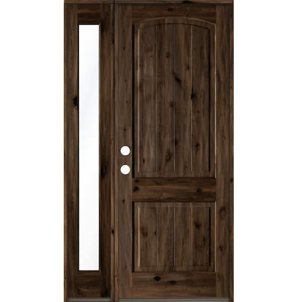 46 in. x 96 in. Rustic knotty alder Sidelite 2 Panel Right-Hand/Inswing Clear Glass Black Stain Wood Prehung Front Door