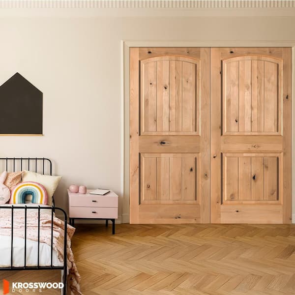 48 in. x 80 in. Rustic Knotty Alder Arch Top VG Both Active Cedar Stain Wood Double Prehung Interior French Door