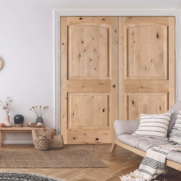 48 in. x 80 in. Rustic Knotty Alder Solid Core Double French Door
