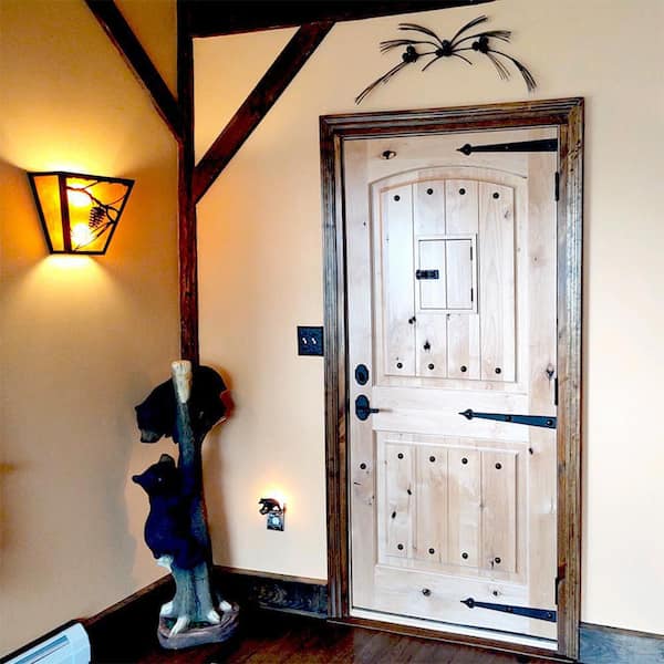 48 in. x 96 in. Mediterranean Knotty Alder Arch Top Clear Stain Left-Hand Inswing Wood Single Prehung Front Door
