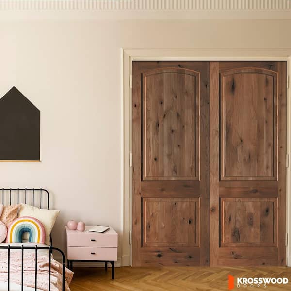 48 in. x 96 in. Rustic 2-Panel Arch Top Universal True Black Stain Knotty Alder Wood Double Prehung Interior Door