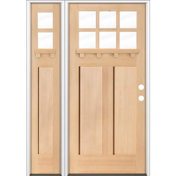 50 in. x 80 in. 6-Lite Craftsman Left Hand Unfinished Hemlock Prehung Front Door Left Sidelite