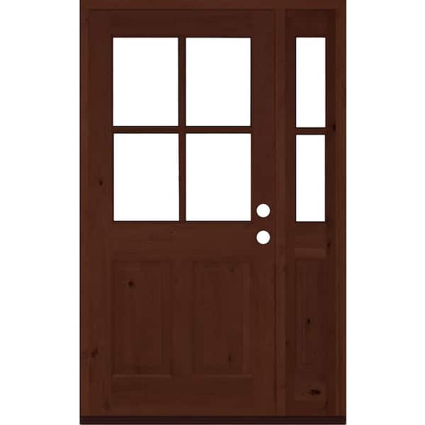 50 in. x 80 in. Alder Left-Hand/Inswing 4-Lite Clear Glass Red Mahogany Stain Wood Prehung Front Door/Right Sidelite